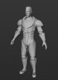 So still plucking away. This time I added shoulders then I decided to play around with the textures in photoshop to get a better idea of what it will look like. suit_textures.jpg Is this the direction that you want me to head in for the suit? Is this big enough to be a battle suit, or would you clas...