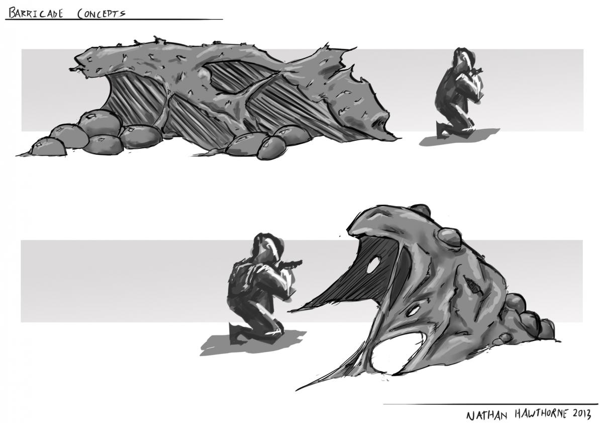 The first one looks good! I'd like the leech to be a little smaller and not as long as our current placeholder (I'd go for a square ground face of the bounding box, so you'd never need to run circles to place it in some tight place). Humans should also be able to jump over it so it isn't used as a cheaper barricade.